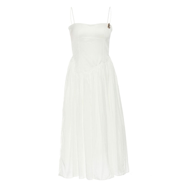 Ob Sie einen gewagten oder einen raffinierten, klassischen Look bevorzugen – dieses exquisite Kleid mit Tüllfutter und einzigartigem Design ist ein Must-have in Ihrer Garderobe. Der herzförmige Ausschnitt betont Ihr Schlüsselbein wunderschön, und ein metallischer Akzent an der Seite verleiht Ihrem Outfit einen Hauch von Glamour. Die zarten Spaghettiträger verleihen eine feminine Note, während der sichere Reißverschluss am Rücken für Komfort sorgt. Die asymmetrische Raffung an der tiefen Taille sorgt für eine schmeichelhafte Silhouette, die Ihre Kurven betont. Der Midi-Saum verleiht Eleganz und macht es zu einem vielseitigen Kleidungsstück für jeden Anlass.