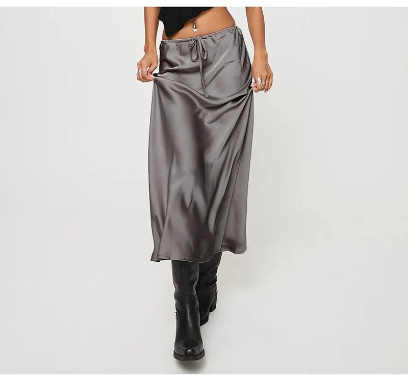 Werten Sie Ihre Garderobe mit unseren langen Satinröcken mit hoher Taille für Damen auf. Hergestellt aus hochwertigem Satinstoff. Diese Röcke bestechen durch ihre schmeichelhafte hohe Taille und eine schlanke Silhouette. Erhältlich in Schwarz, Grau und Beige. Diese Röcke sind vielseitige Basics für Ihre Frühlingsgarderobe. Der Kordelzug verleiht einen Hauch von Raffinesse, während der Meerjungfrauen-Saum für elegantes Flair sorgt. Perfekt für legere und formelle Anlässe. Diese Röcke sind ein Must-have für Ihre Kollektion.