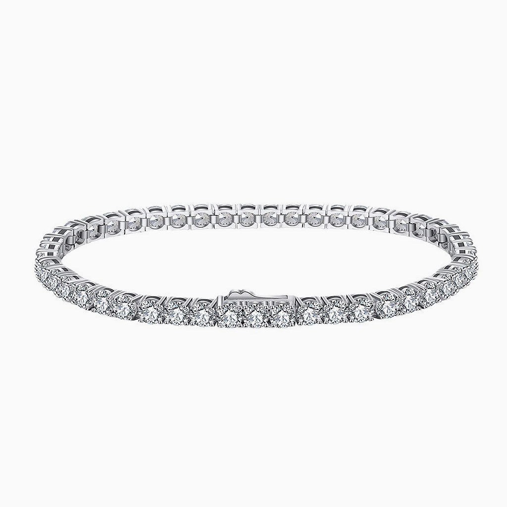 Strahlen Sie wie Diamanten – ganz ohne Preisschild! Jeder Edelstein sorgfältig ausgerichtet. Strahlender Glanz. In drei Breiten erhältlich. Unser silbernes Designer-Tennisarmband verleiht Tiefe, gestapelt oder allein. Es wertet jeden Look mühelos auf.