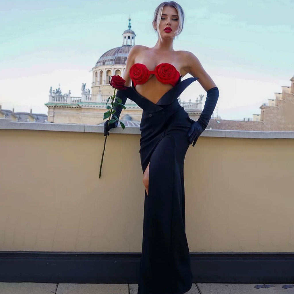 Dieses luxuriöse Fischschwanzkleid mit Handschuhen vereint klassisches Zweireiher-Design und verleiht ihm Dramatik mit Vintage-Charme. Das freizügige Schulterdesign unterstreicht Sinnlichkeit und Eleganz. Der romantische 3D-Blumen-BH-Schnitt verleiht dem Gesamtlook eine zarte und exquisite Note. Der Meerjungfrauen-Saum verleiht Ihnen beim Gehen eine königliche Aura. Die Handschuhe als Accessoires verleihen einen Hauch von Luxus. Dieses bodenlange Designer-Bandagekleid bietet ein luxuriöses, sexy und auffälliges Abendkleid. Ideal für selbstbewusste und stilvolle Frauen zu besonderen Anlässen.