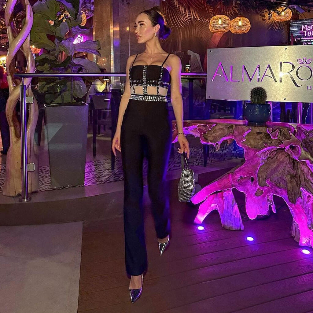Der Inbegriff von Chic: Treten Sie mit unserem funkelnden Jumpsuit ins Rampenlicht! Sorgfältig aus luxuriösem Bandage-Stoff gefertigt, besticht dieses Designer-Ensemble durch geflochtene Schulterträger und ein sorgfältig gearbeitetes, eng anliegendes Oberteil mit Mesh-Einsätzen, verziert mit prächtigen Strassverzierungen. Ein verdeckter Reißverschluss auf der Rückseite verleiht diesem Outfit einen Hauch von Raffinesse. Die figurbetonte Hose und der weite Beinausschnitt bieten mühelos mehr Bewegungsfreiheit und kreieren eine Silhouette voller Eleganz. Genießen Sie den eleganten und stilvollen Look. Hinterlassen Sie mit diesem unvergesslichen Jumpsuit überall einen bleibenden Eindruck.