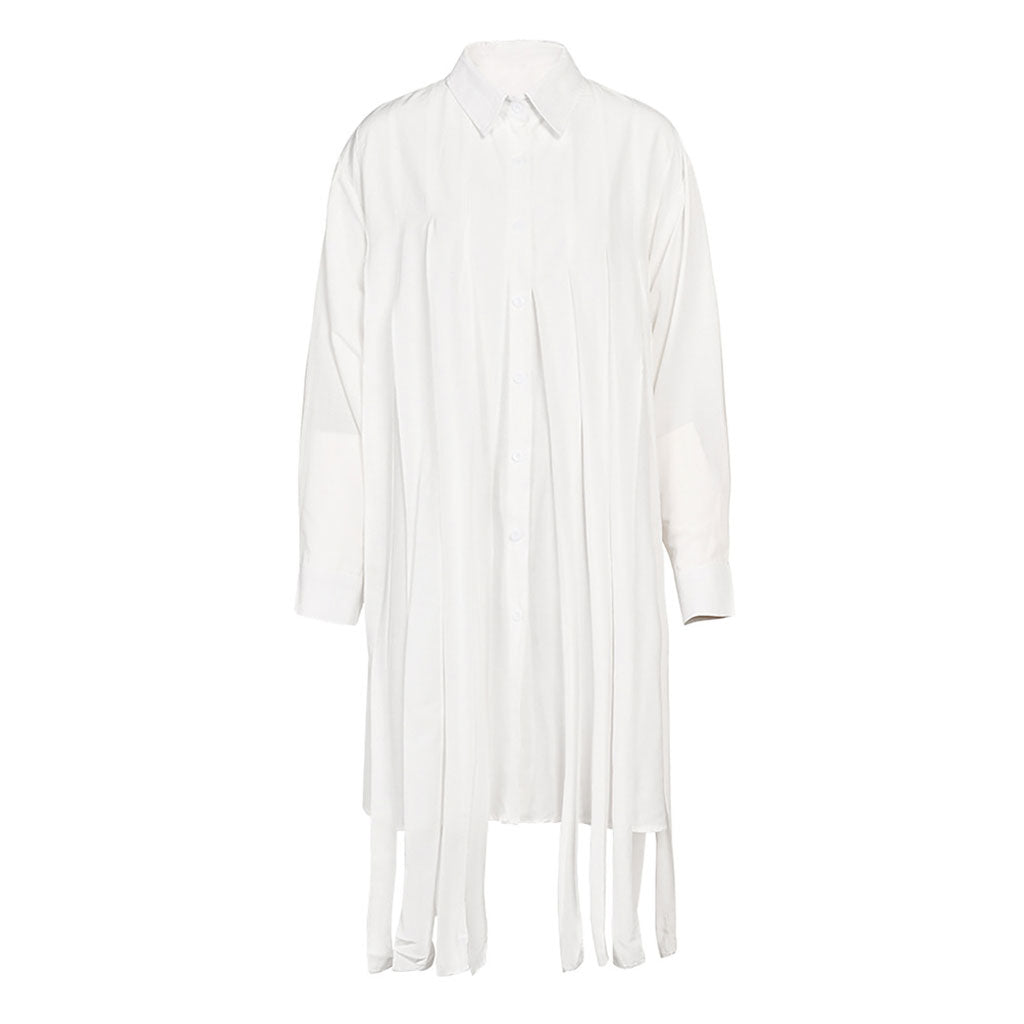 Luce un look relajado con nuestro vestido camisero deconstruido de diseñador. El clásico cuello en punta y las mangas largas con delicados botones evocan una serena sofisticación. Confeccionado en mezcla de algodón, este vestido blanco de diseñador luce una silueta oversize que irradia una elegancia relajada. Con intrincados pliegues y adornado con caprichosas borlas, este impecable vestido blanco con botones encarna la esencia de la gracia sin prisas. Su diseño deconstruido es un testimonio del arte de la moda moderna, fusionando a la perfección comodidad e ingenio. Al lucir esta creación, no solo llevas un atuendo, sino que adoptas un estilo de vida único.