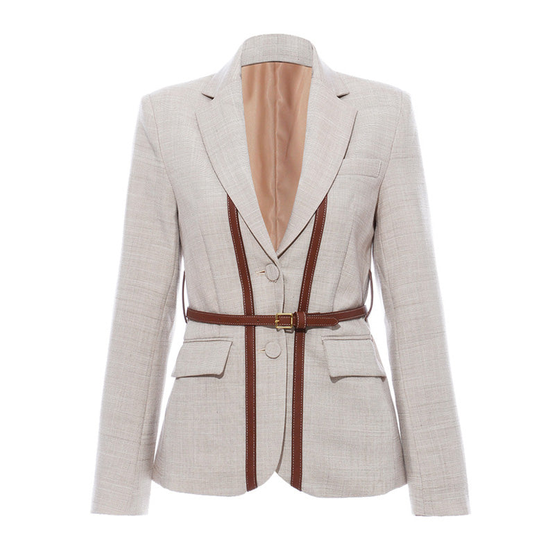 La marca de diseño describe su elegante blazer como "una oda a la feminidad poderosa", y estamos totalmente de acuerdo. Con una silueta esbelta que realza el look, este blazer está confeccionado en tejido jaspeado con cuello de solapa. Presenta mangas largas, hombreras reforzadas, bolsillos delanteros con solapa y cintura con pinzas. Su diseño con trabillas y cinturones superpuestos define la estética ecuestre más exclusiva. Combínalo con pantalones ajustados y botas de cuero ecuestre para un look elegante al instante.