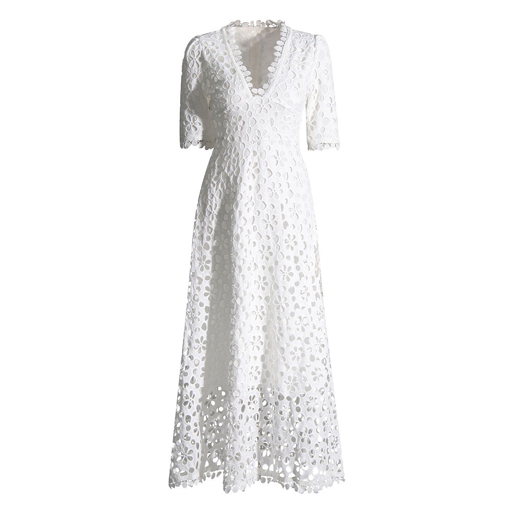 El exclusivo bordado floral inglés añade textura y un toque de alegría etérea a este vestido bohemio vacacional de diseñador. El vestido blanco luce un escote en V festoneado que le da el escote perfecto y su largo maxi rozará los tobillos para las de estatura baja o media, o terminará unos centímetros más alto para las más altas. Forrado para máxima comodidad, este hermoso vestido ofrece un look elegante y decente con las medias mangas ligeramente abullonadas y la cintura ajustada que acentúa la parte más estrecha de tu cuerpo antes de caer en una falda acampanada. La cremallera trasera oculta facilita su uso. Tiene el poder de transportarte a un relajante lugar de vacaciones una vez que te lo pones. Y todo lo que necesitas es combinarlo con sandalias de tiras y gafas de sol. Este vestido blanco no puede quedar mal, como hemos probado.