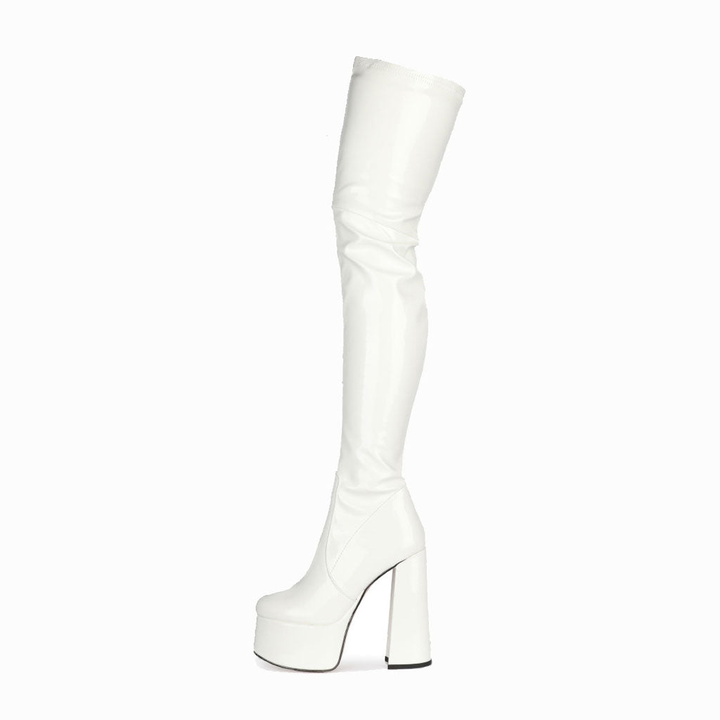 Lo creas o no, las botas ajustadas volverán con fuerza esta temporada. ¡Echa un vistazo a este par y pruébalo! Como cualquier otro, estas botas-pantalón altísimas son ultra ajustadas y reflejan una sensualidad explícita y una estética femenina. Se equilibran con plataformas apiladas. Se asientan sobre tacones gruesos que ofrecen una altura estable sin sacrificar la comodidad. Fabricadas con charol sintético de alta calidad, tienen una parte superior elástica que se ajusta a la pierna y te encantará su textura brillante que te hará lucir lo mejor posible, ya sea para ir de fiesta o con un look urbano moderno. Incluyen una cremallera de 1/4 para un ajuste más fácil y una selección de colores favorecedores que combinan con todo.