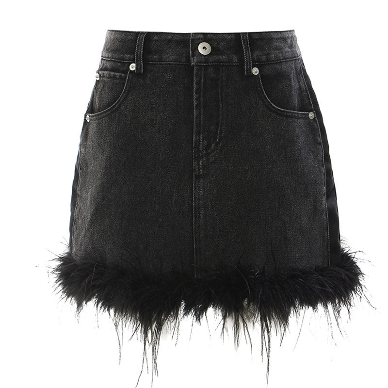 Dale un toque dramático a tu look con nuestra falda con ribete de piel sintética. Diseñada con una combinación de lujo gótico y un toque moderno, esta falda vaquera de diseñador es imprescindible para quienes buscan destacar. Esta minifalda ajustada presenta un favorecedor tiro alto y un exclusivo dobladillo de pelo que le da un toque de sofisticación y textura. Su color negro le da un toque versátil, haciéndola perfecta tanto para el día como para la noche. Su corte ajustado acentúa tus curvas, haciéndote sentir segura y glamurosa a cada paso. Esta excepcional falda está diseñada para las más atrevidas y vanguardistas.
