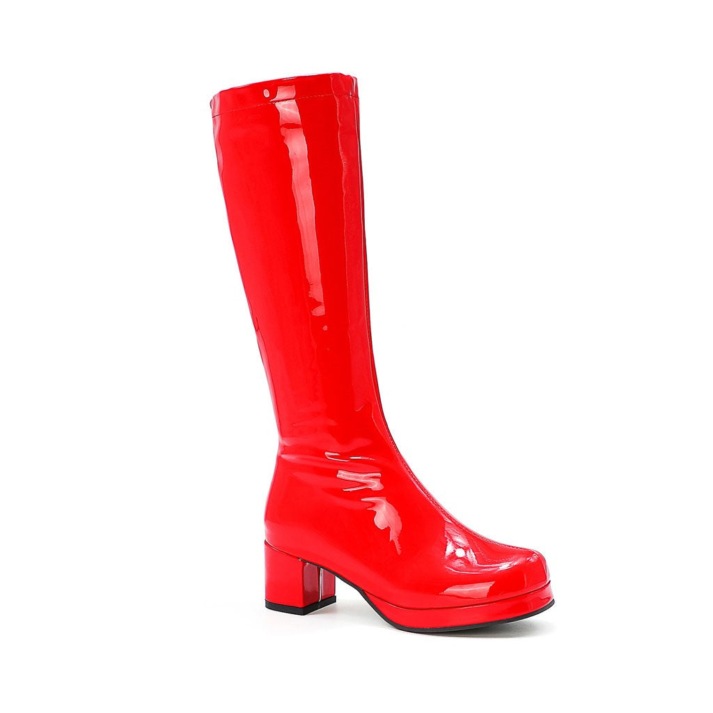 Botas de media caña con plataforma, tacón grueso y punta redonda pulida - Rojas