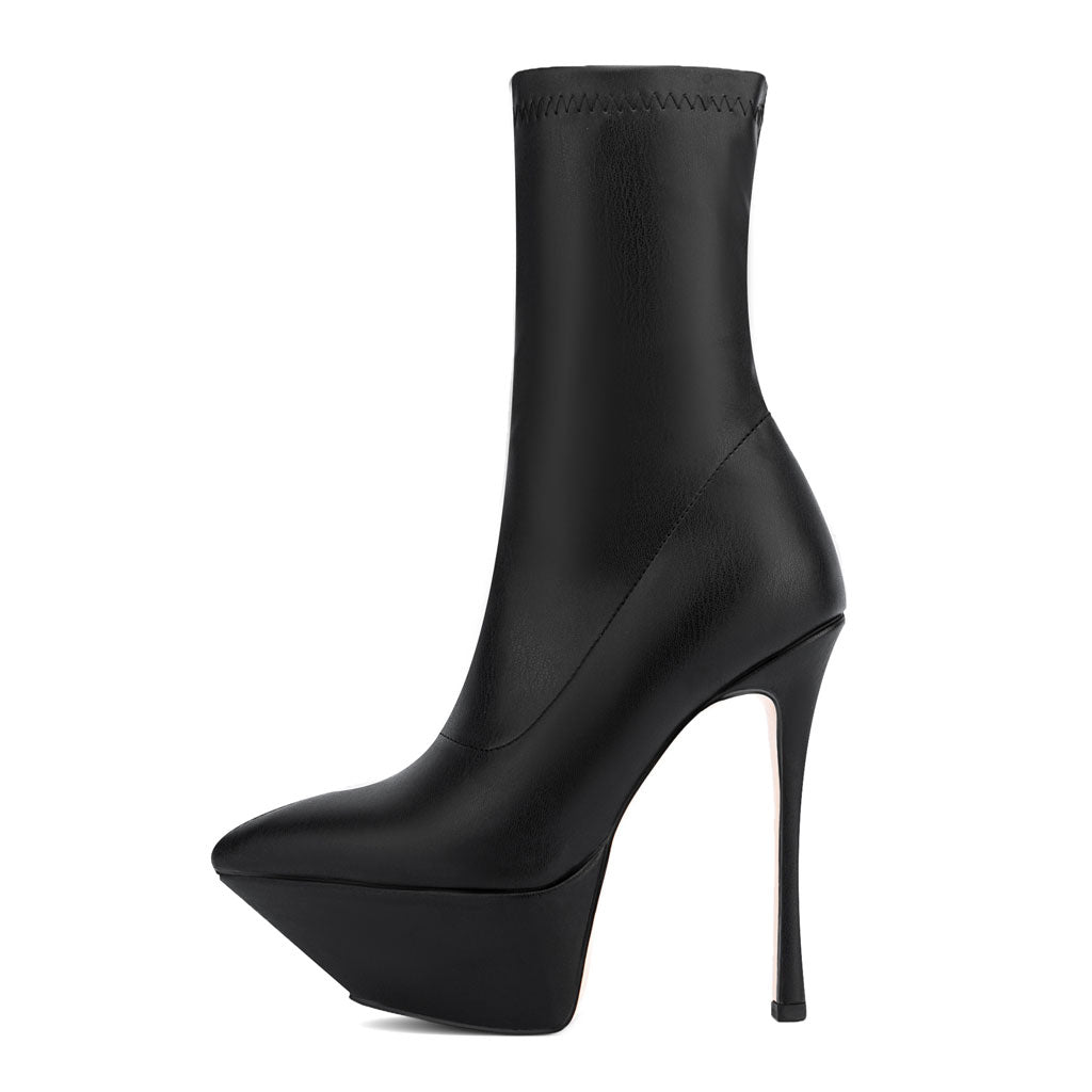 Con un solo paso en estas altísimas botas de tacón, te sentirás segura el resto del día. Diseñadas para destacar y hacerte destacar entre la multitud, estas elegantes botas presentan una elegante punta puntiaguda, suela de plataforma en la parte delantera y un tacón de aguja de 10 cm, lo que crea el equilibrio perfecto entre comodidad y altura deseada. Su exterior negro liso, hecho de piel sintética de primera calidad, contrasta su sensualidad y le da un aire moderno. Su suave tejido también les proporciona una gran elasticidad, lo que las hace fáciles de poner. Combina con lo que quieras y siempre acertarás.