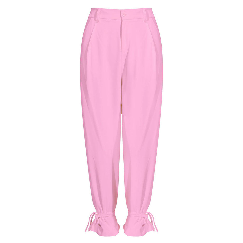 Mejora tu estilo con estos pantalones de traje diseñados por nuestra marca. Su diseño en crepé luce un tono rosa pastel que le da un toque único a tu estilo femenino. Con cintura alta y trabillas, cintura elástica, bolsillos delanteros inclinados y cierre de cremallera y botón, estos pantalones tienen una silueta ancha y voluminosa que se puede combinar con tiras en los tobillos para darle un toque moderno. El blazer con cinturón a juego y este pantalón de traje son la combinación perfecta. Para un look aún más elegante, dale un toque especial con tacones altísimos.