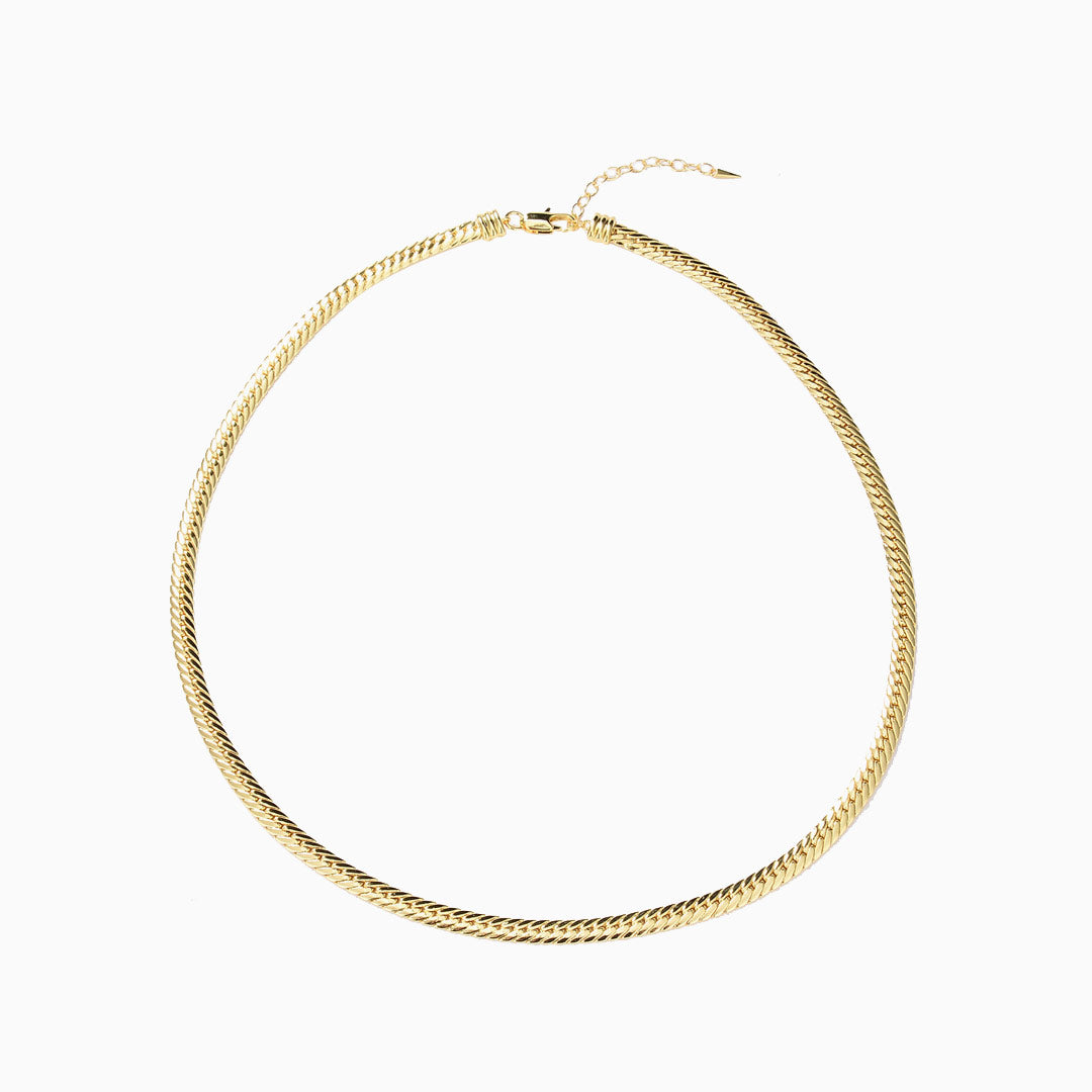 Con un diseño abierto inspirado en el efecto serpiente, este lujoso collar es la manera perfecta de realzar tu estilo urbano. Este llamativo collar presenta gruesas cadenas retorcidas, largo fijo con cierre de mosquetón y acabado chapado en oro. Dale un toque de detalle a tu atuendo. Nuestra colección de joyería de diseñador también incluye muchos collares de moda para mujer. ¡Sigue navegando y descubre los mejores estilos aquí!