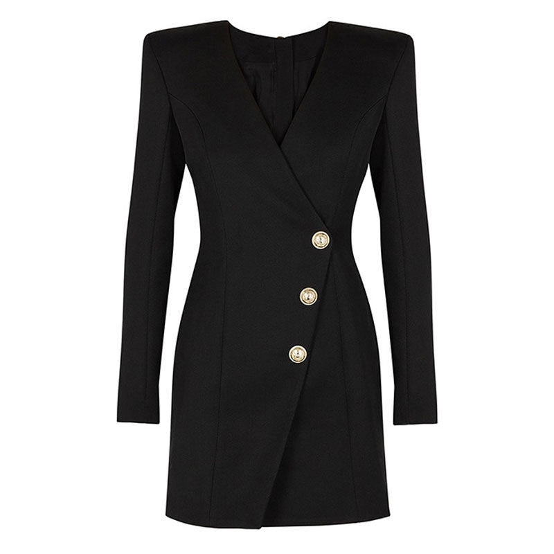 We never knew how much we needed a tailored blazer until now. Our designer blazer unquestionably looks luxurious and will elevate even the simplest jeans outfits. The polished longline blazer is styled with an asymmetric single breasted silhouette with darted waist for a sophisticated. tailored look. The slim fit features long sleeves. shoulder pads and a non-collar V-neckline and is decorated with embossed gold-tone buttons on the cuffs. It has an exposed metal zip fastening to the back for easy on and off. Show off your leg by pairing this blazer with the matching shorts or skirts as this enticing piece is assured to add inexplicable elegance to your ensemble. By the way. we love the ideal of scrunching up sleeves.