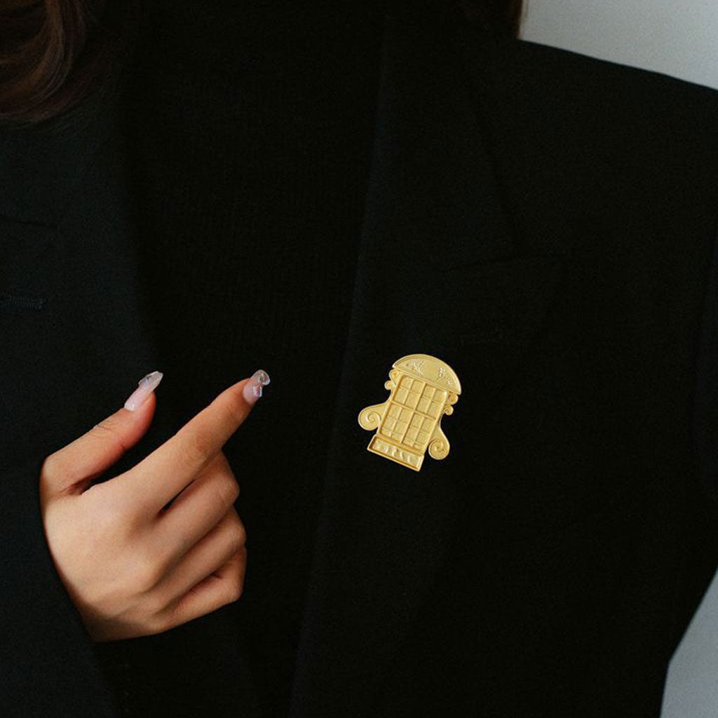 Effortlessly marrying simplicity with opulence. this designer gold tone brooch features a captivating window shape adorned with intricate texture. Whether worn solo or personalized with pearls and gemstones for a Victorian-inspired masterpiece. it's destined to add a touch of elegance to your wardrobe.