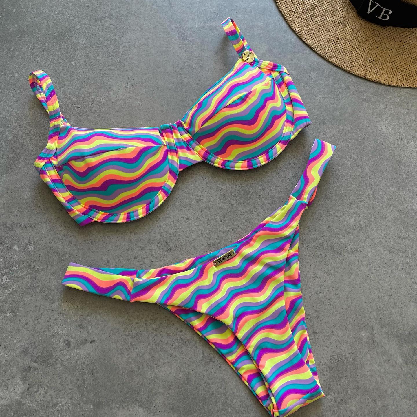striped push up swimsuit with straps