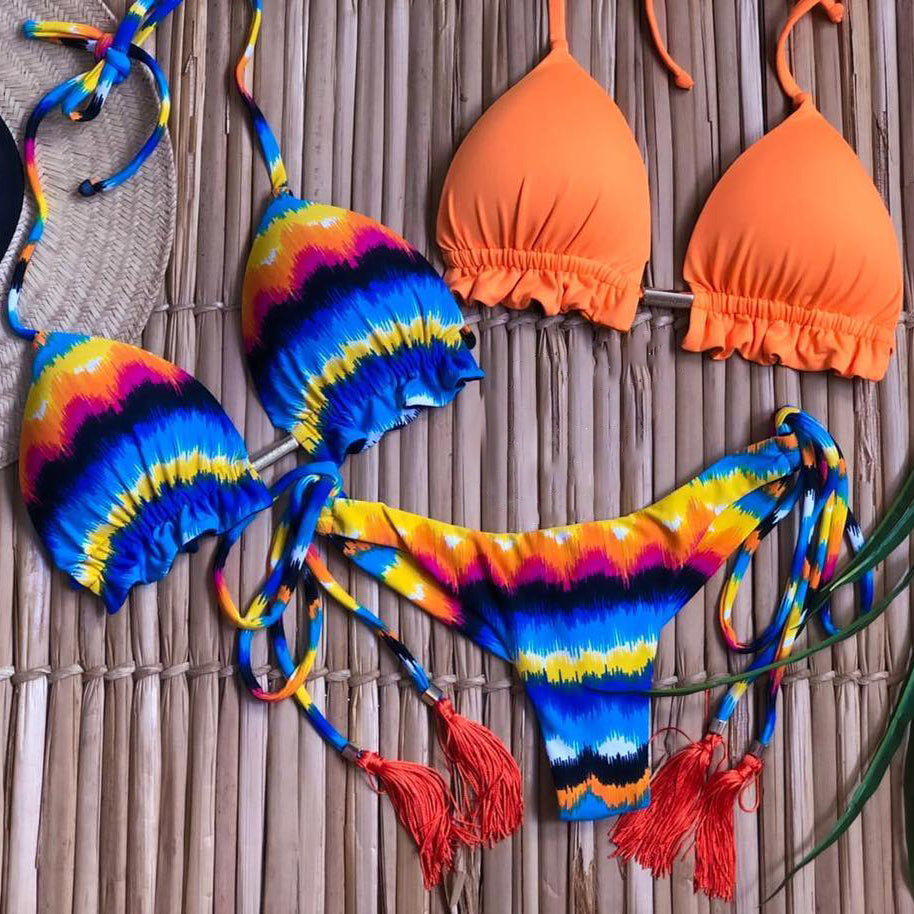 and personalized rainbow pattern tassel bikini