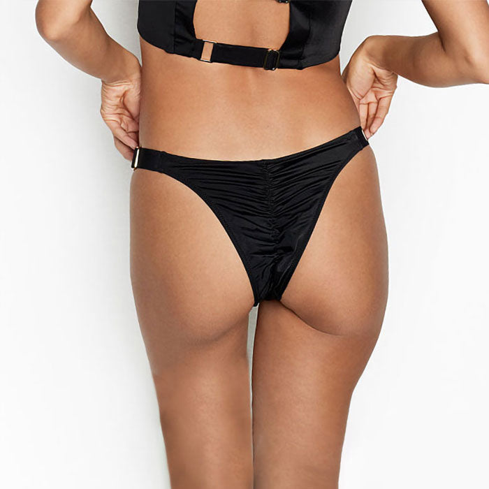 This Brazilian bottom is the perfect addition to your bikini collection. A cheeky fit with adjustable wide-set strap each side and the ruched middle on the back. you can pair this with many bikini tops.