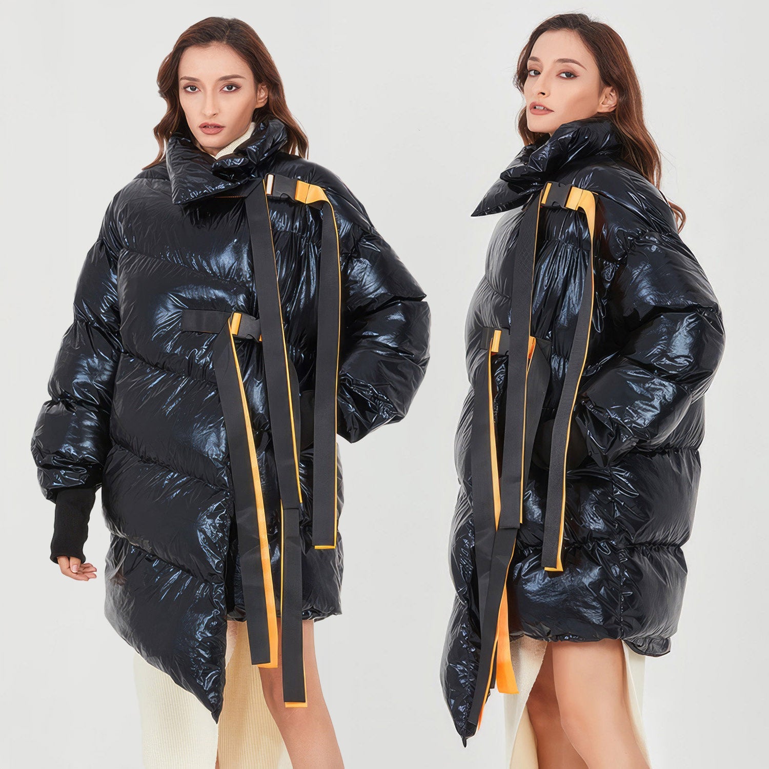Stay warm in style with this oversized puffer jacket. Crafted with an irregular hem and a high neckline for maximum warmth. it's ideal for cold winter days.
