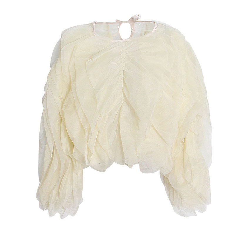Elevate your fashion game with this flowy blouse designed by our designer brand. The airy chiffon material keeps the silhouette lightweight. forever billowing in its multiple-layer construction with a cute round neckline. long puff sleeves. a keyhole tie at the nape of the neck. It's specifically made in hot pink. black and cream versions of you to choose from. The slightly cropped length makes it versatile enough to go matchy-matchy with most of the bottoms in your wardrobe. Pick up one of these colors and pair yours with a sleek leather skirt for a parading head-turning look.