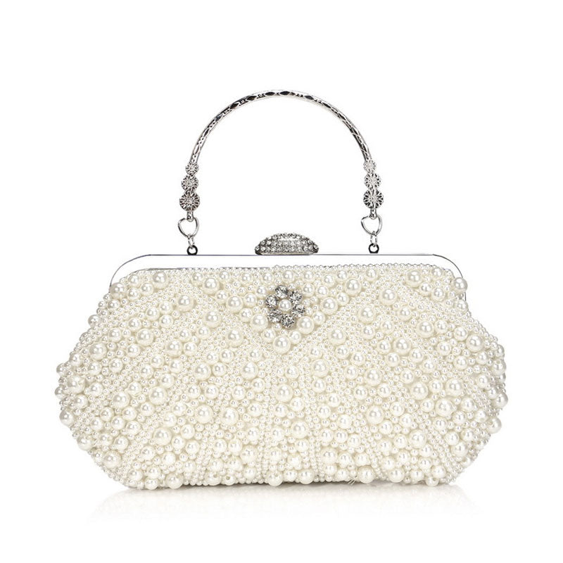 Embellished with various size imitation pearls throughout. this luxury pouch clutch is the perfect way that matches any outfit effortlessly with elegance and feminine. The occasion-perfect pearl handbag features rhinestone decorations on the top and front. a metallic top handle with floral embellishments. a removable chain shoulder strap for a shoulder bag silhouette. Match it with our pearl strap maxi evening dress and make an instant hit at the party. Our designer bags collection also brings out many unique pearl clutches for women. Why not just pick one and elevate your look now!