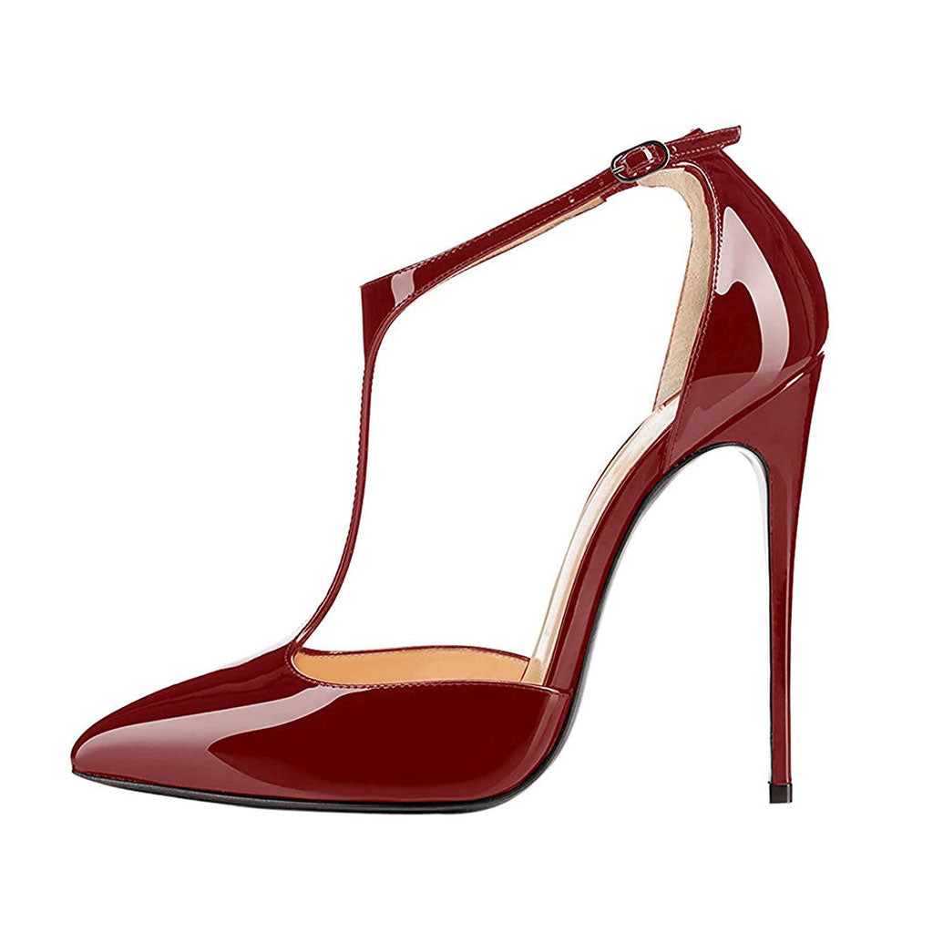 Roar back 100 years to unprecedented golden '20s with this old-fashion. which perfectly creates an elegant and sophisticated comeback style. There's nothing better than having something as special as these spindly heels with so many colors available which are made with a composition of slick patent leather upper. The design features a closed point-toe silhouette. tapered thin high heels with a wraparound detailing for a firm-fitting foot placement. They also present ultra classic T-straps on the vamp which ends at ankle straps with adjustable buckle clasps. The overwhelmingly retro statement makes for a perfect elevation with super feminine dresses or skirts such as those with laces or floaty fit-and-flare silhouette.