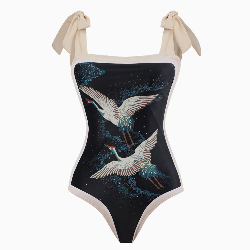 Darlin. get beach-ready in our retro-chic swimwear collection! This designer vintage one-piece swimwear features a chic square neck. adjustable bow ties on the shoulders. a moderate back. and removable pads for comfort and style. Get ready to make a splash in your favorite bohemian. galaxy. baroque. or animal pattern. each piece crafted with love and attention to detail for you.